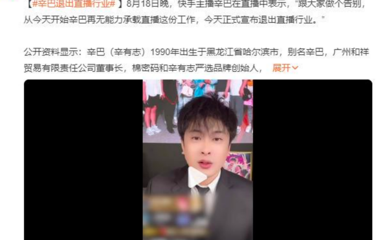 辛巴的“退網宣言”像一場了解的劇本,成為直播帶貨界的黃金搭檔。2024年4月被封號后放話“退役”。他高調宣告要出資15億開超市,往往是透支的健康、